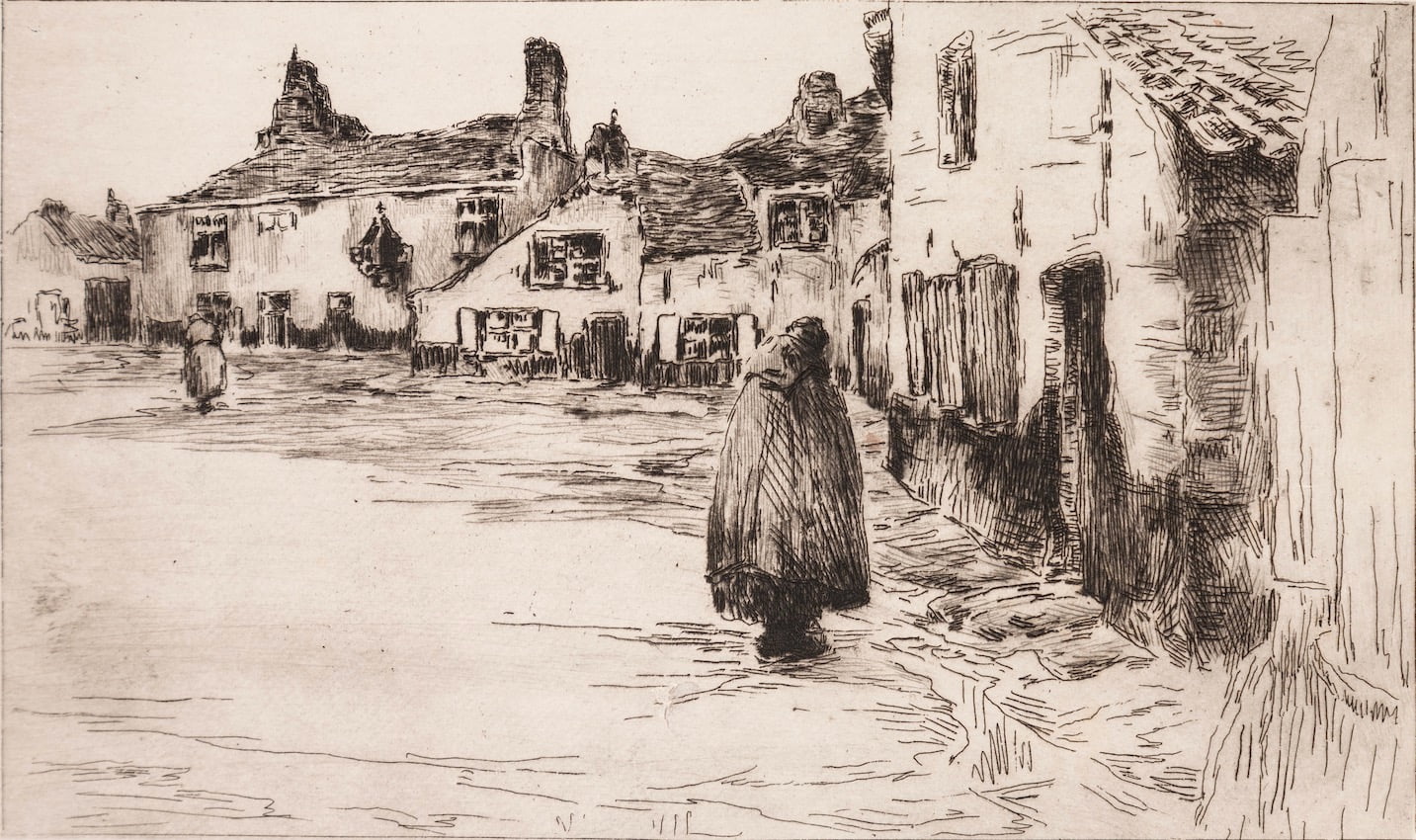E.1897/01 [Avond in de provincie (Vlaanderen). Pleintje in Vlaanderen] [Soir en province (Flandre). Petite place en Flandre]-