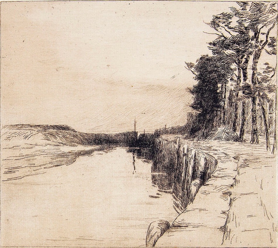 Eau-forte publiée dans l'album Société des aquafortistes belges, huitième année, 1897. Concours de 1897 (Bruxelles, 1897)