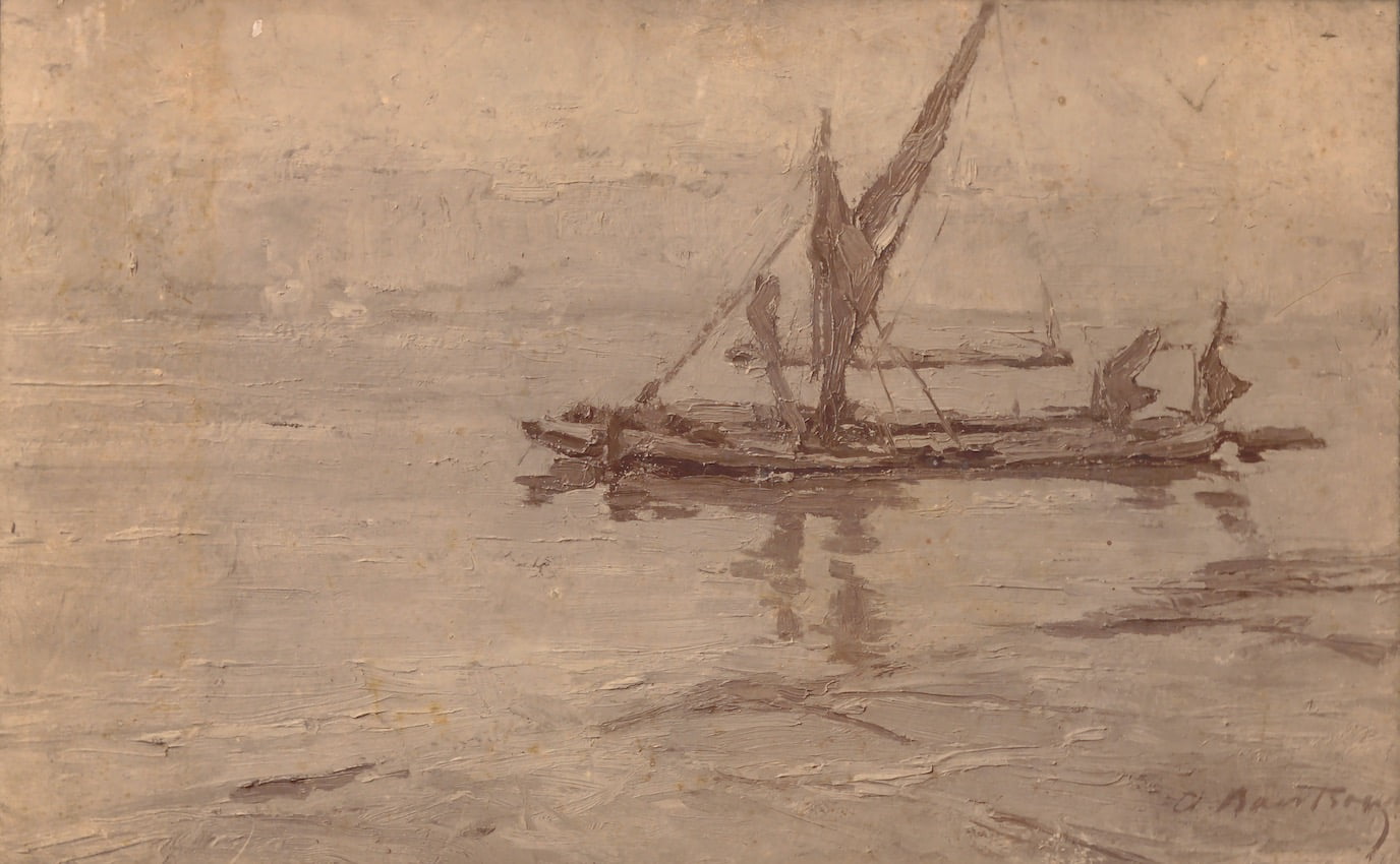 Foto van het werk in het Familiearchief Baertsoen, met nota AB “Sur la Tamise, appt. à M. L. Vankeerbergen à Bruxelles”